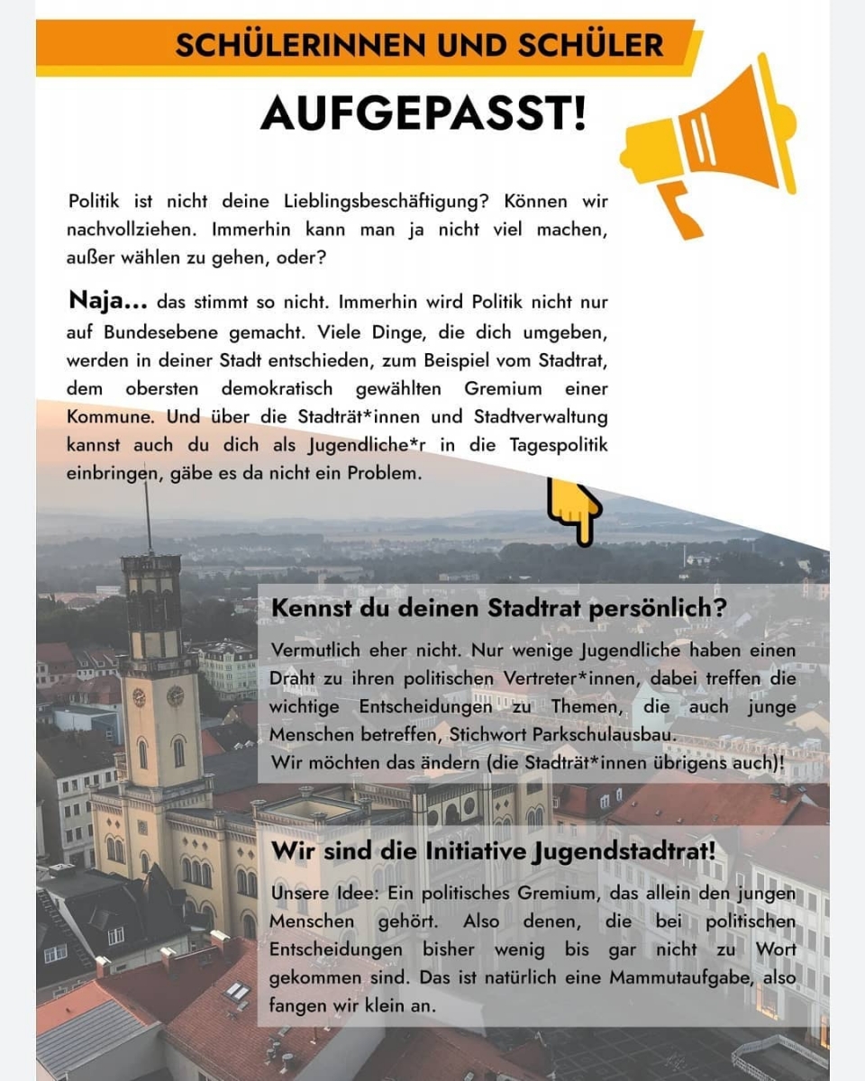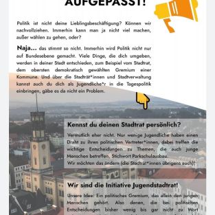 Nun hat sich die "Initiative Jugendstadtrat" gegründet, die nicht länger warten will und es nun selbst in die Hand nehmen. Sie erarbeiten Konzepte für einen Zittauer Jugendrat und verschaffen der Jugend in der Stadtgesellschaft Gehör.