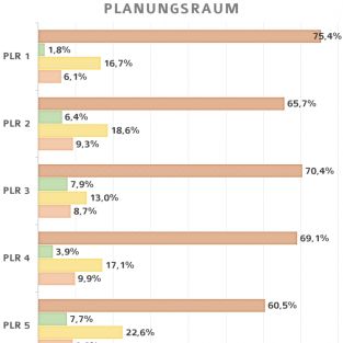 Zum Zwecke einer bedarfsgerechten Sozial- und Jugendhilfeplanung, gibt es im Landkreis Görlitz 5 Planungsräume mit jeweils ca. 40.000 bis 70.000 Einwohner*innen. Die Befragung konnte 1019 Jugendliche und junge Menschen erreichen, die sich wie folgt auf die Planungsräume (PLR) aufteilen: PLR 1 (Weißwasser) 11%, PLR 2 (Niesky) 17%, PLR 3 (Stadt Görlitz) 35%, PLR 4 (Löbau) 15% und PLR 5 (Zittau) 19%. Wird das Geschlecht betrachtet, lässt sich eindeutig feststellen, dass es deutlich mehr Teilnehmerinnen (59%), als Teilnehmer (39%) gab. Ca. 1% gaben an, ihr Geschlecht sei divers oder trafen keine Aussage darüber. Bezüglich des Alters gehören die meisten Teilnehmenden der Altersgruppe von 14 bis 17 Jahren (32%) oder der Altersgruppe von 18 bis 21 Jahren (37%) an. In den anderen vorgegebenen Altersgruppen von 22 bis 24 Jahren und 25 bis 27 Jahren waren 17% und 11% beteiligt. Wie die Verteilung auf die Altersgruppen schon vermuten lässt, sind die meisten der Befragten Schüler*innen (35%). Folgend sind Berufstätige (25%), Auszubildende (19%), Studierende (14%) und sonstige Tätige (4%). 3% haben keine Angabe über ihren Status bzw. ihre Tätigkeit gemacht. Des Umfangs und der leichteren Übersicht wegen, werden nun die Ergebnisse, die sich auf den gesamten Landkreis beziehen, in den einzelnen Themenbereichen dargestellt.