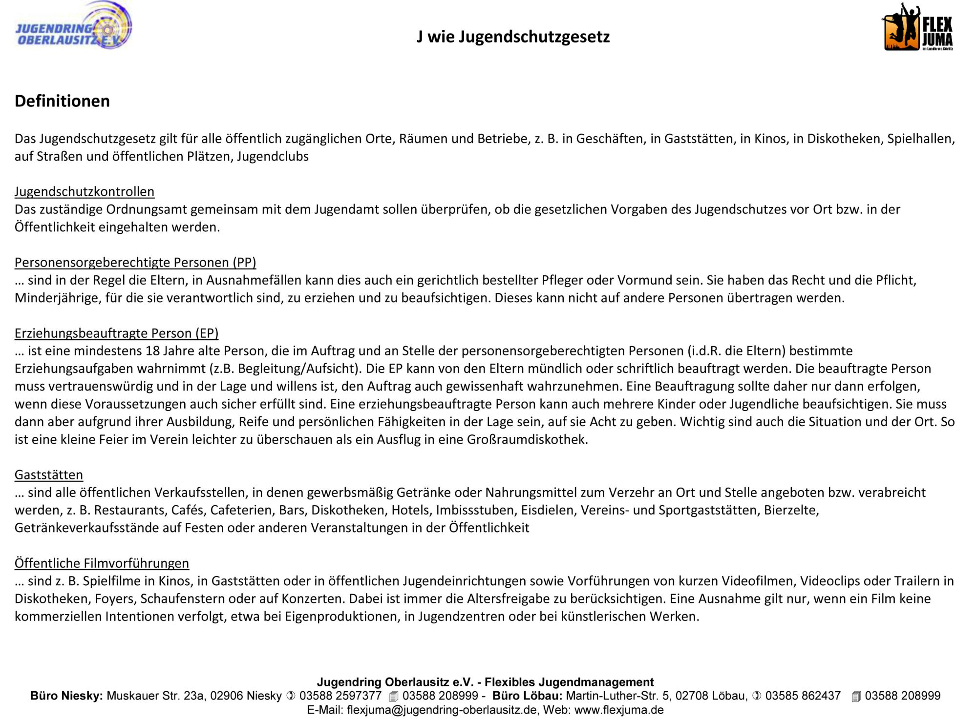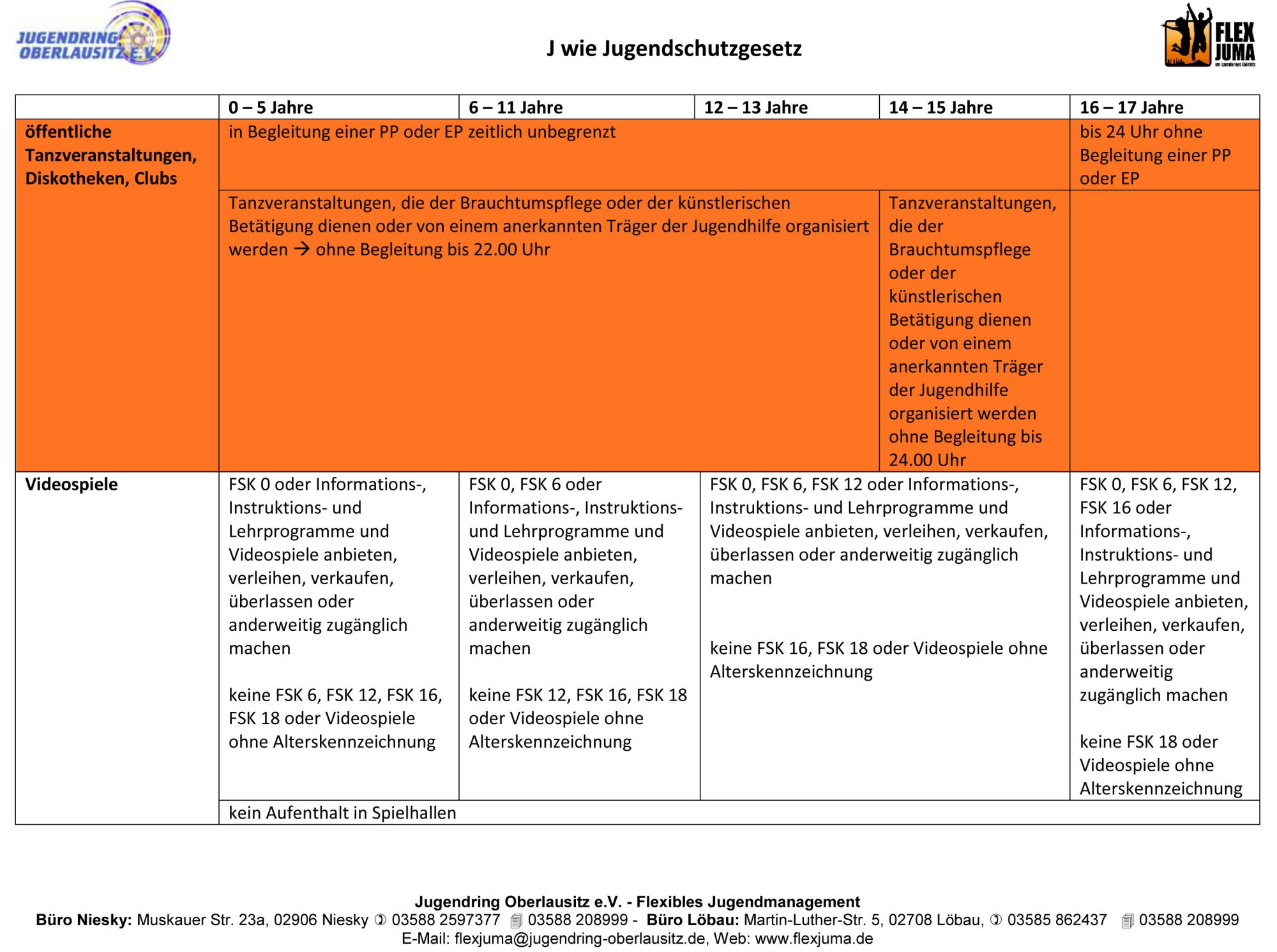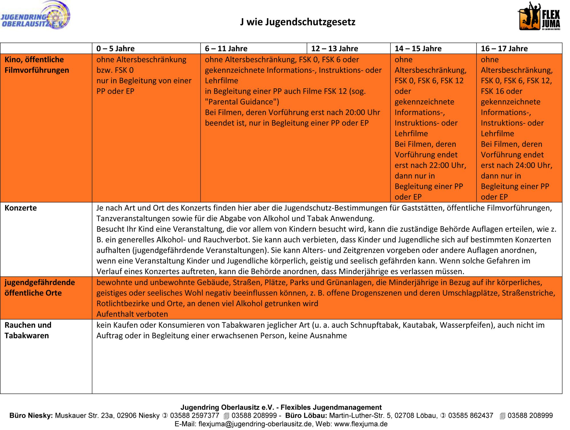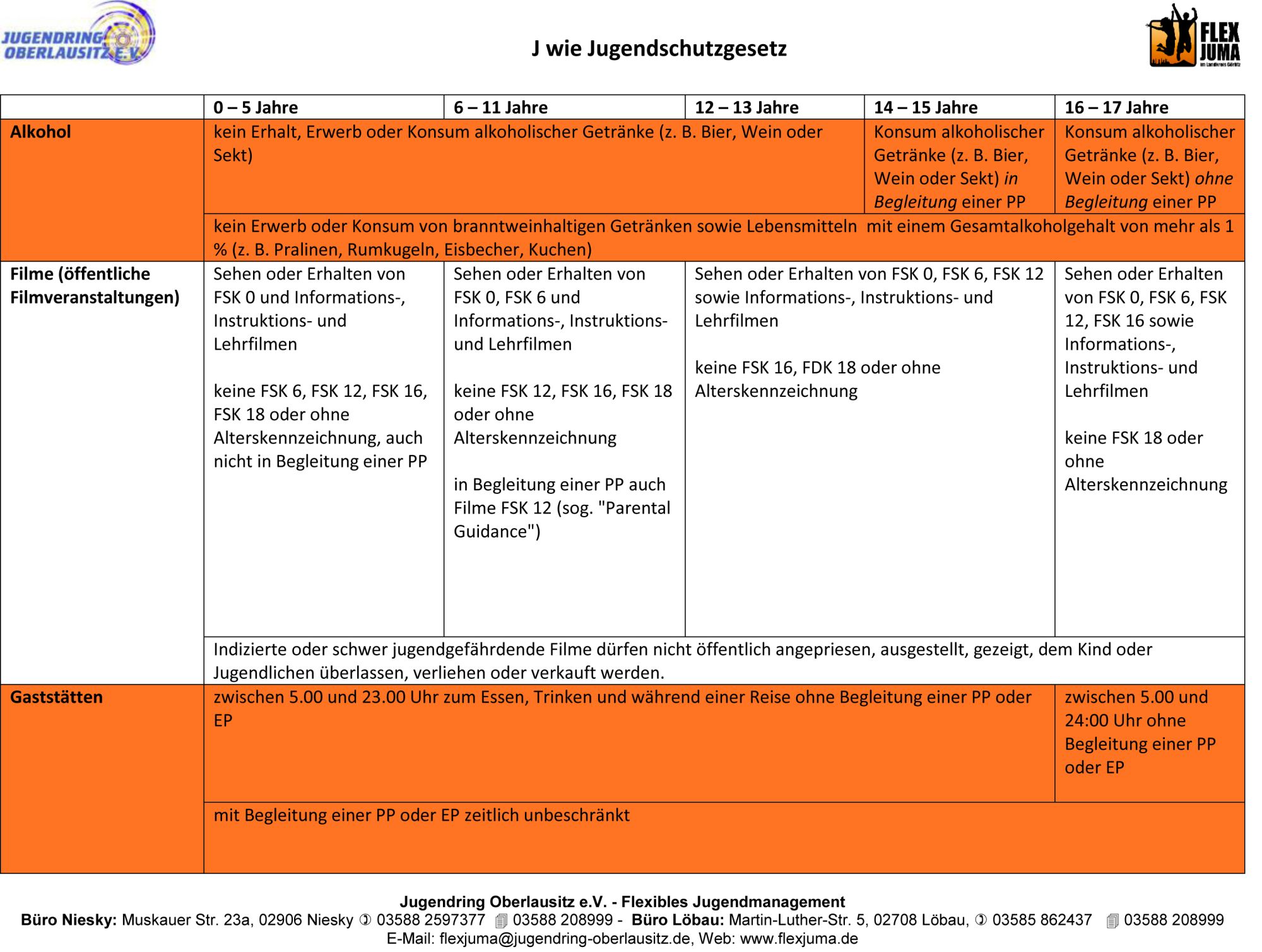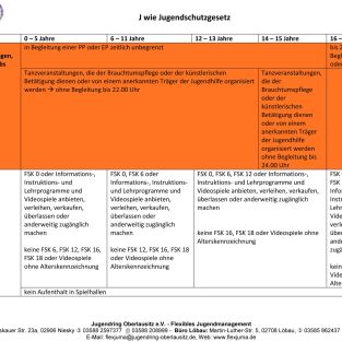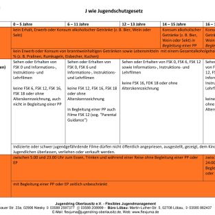 Hier findet ihr eine Übersicht zum Thema Jugendschutz in eurem Jugendclub, Treff oder sonstigen Einrichtungen. Die Übersicht könnt ihr euch auch als PDF downloaden oder ausdrucken und in eurer Einrichtung aufhängen.